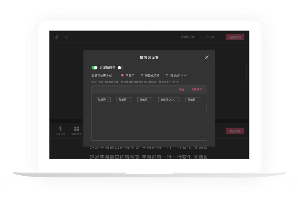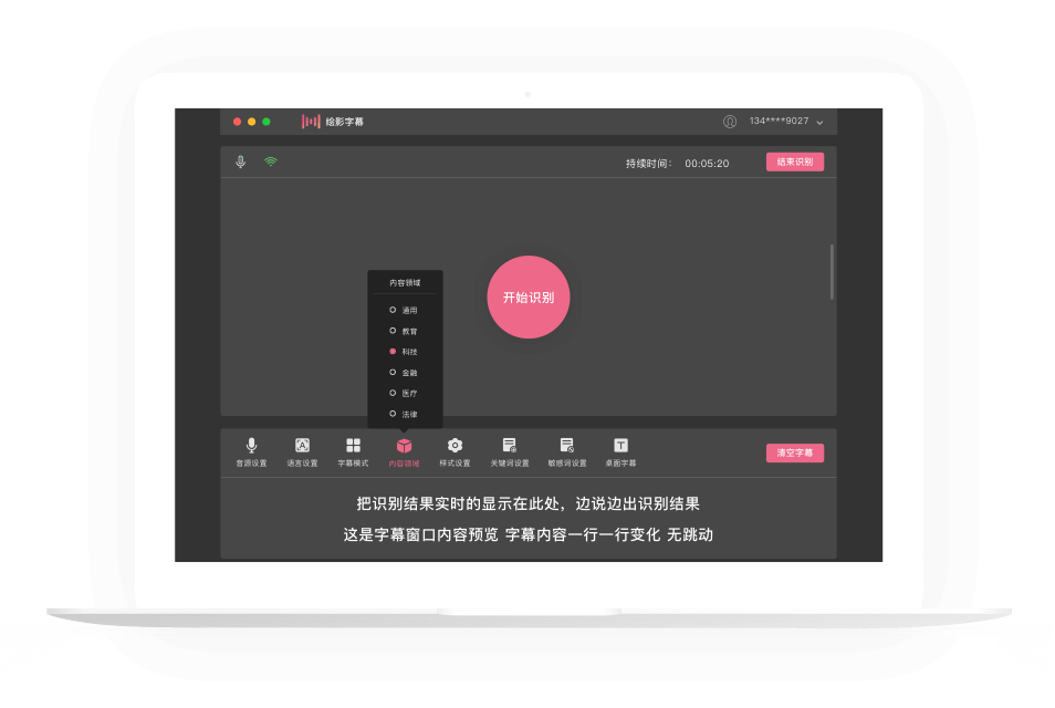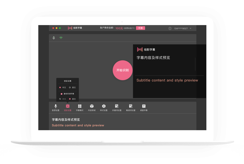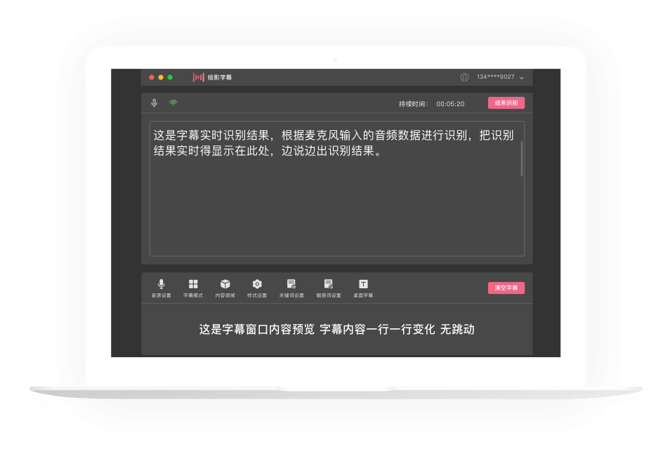 实时语音识别,将说话内容实时转成字幕,双语同传翻译